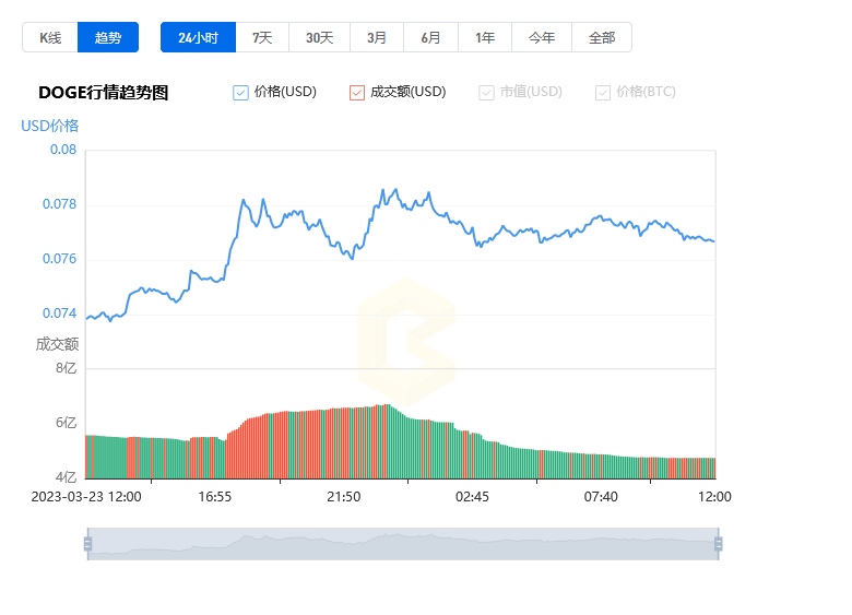 | 2023年3月24日 | 0.076766 | 0.077387 | 0.077498 | 0.076526 | 2.12B | -0.80% |