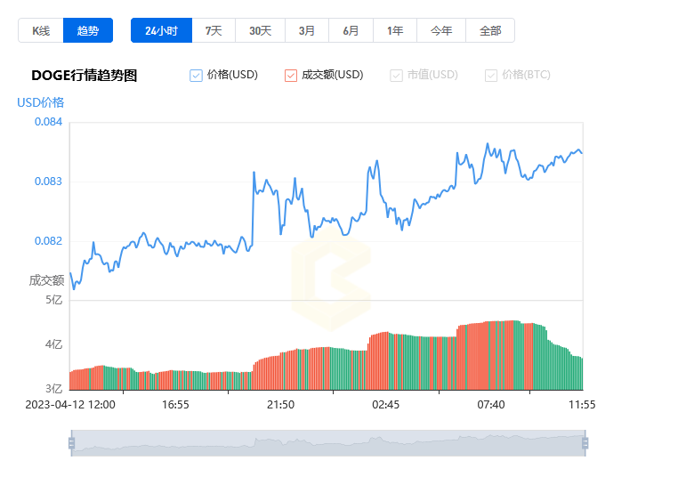 | 2023年4月12日 | 0.083398 | 0.084133 | 0.084487 | 0.081099 | 2.19B | -0.87% |