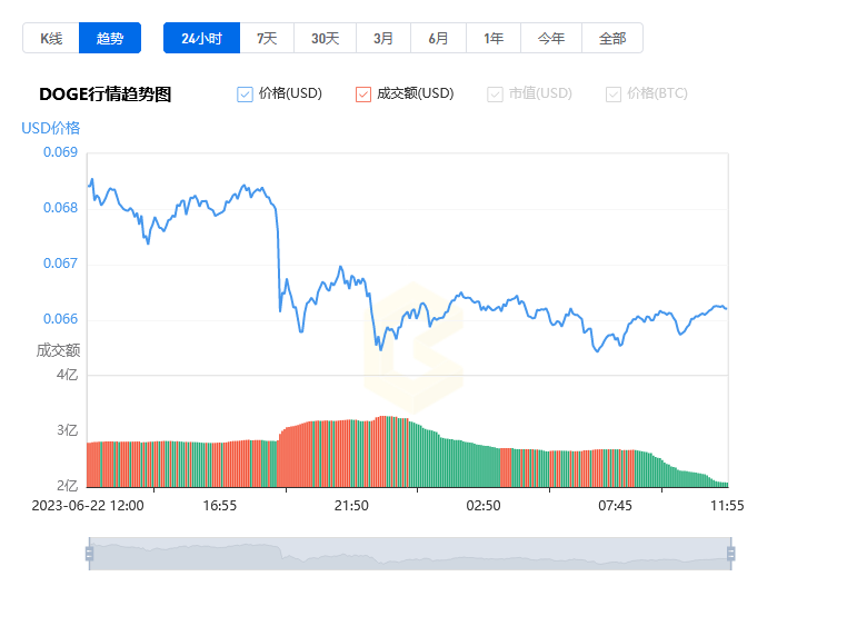 二、各个交易所狗狗币价格与成交量