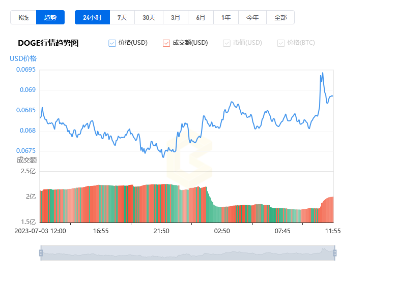 | 2023年7月4日 | 0.068689 | 0.068441 | 0.069552 | 0.067906 | 955.22M | 0.40% |
