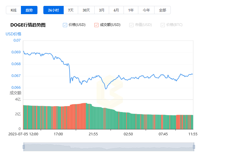 | 24H换手率: 2.07% | 24H波幅: 5.28% | 流通数量: 1374亿 | 市值占比: 0.78% |